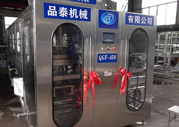 QGF-150五加侖大桶水灌裝生產線的主機設(shè)備有機架、水箱、管道、水泵、氣缸、傳動、電器等組成,完(wán)成空桶衝洗,灌裝、壓蓋等動作,通過多道衝洗工序,定量灌裝,自動帶蓋(gài)壓蓋,五(wǔ)加侖大桶水灌裝機生產線所有動作電腦控製,實現穩定的衝洗效果,精(jīng)確的灌裝容量,密封的壓蓋效果。