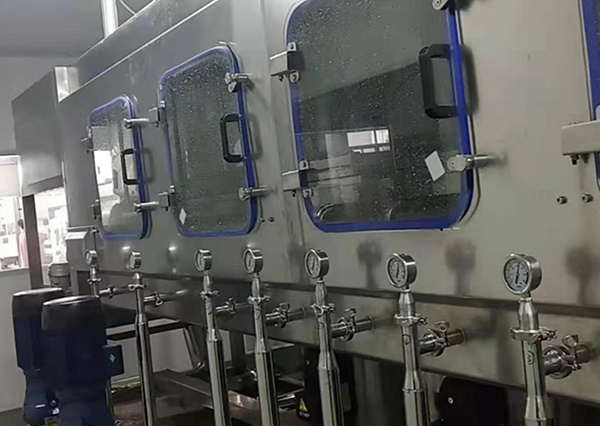 QGF-150五(wǔ)加侖大桶水灌裝生產線的主機設備有機架、水箱、管道、水泵(bèng)、氣(qì)缸、傳動、電器等組成,完成空桶衝洗,灌裝、壓蓋等動作,通過多道衝洗工序(xù),定量灌裝,自(zì)動帶蓋壓蓋,五加侖大桶水灌(guàn)裝機生產線所有動(dòng)作電腦控製,實現穩定的衝洗效果,精確的灌裝容量,密封的壓蓋效果。